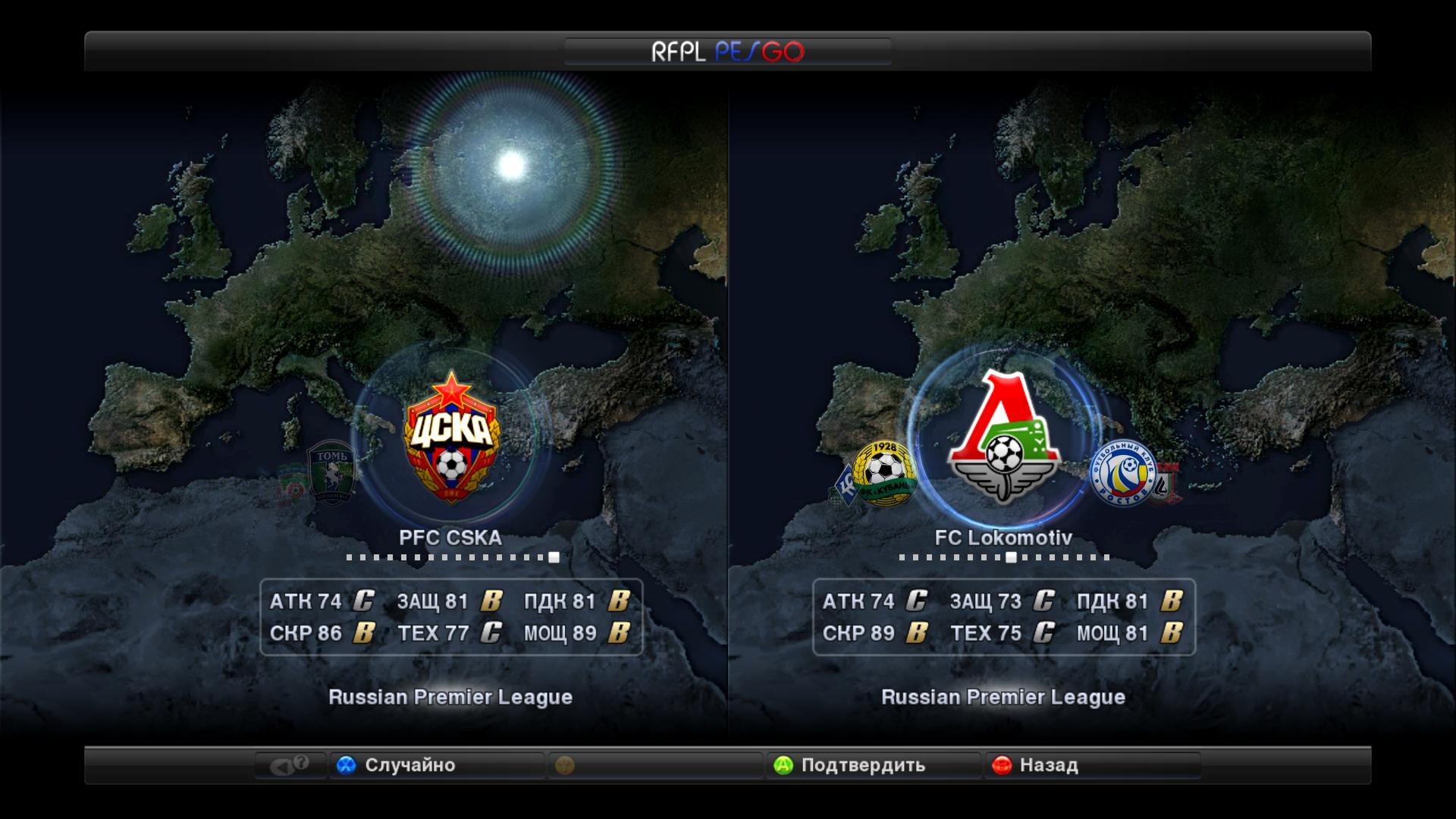 Veberr В настройках игры смени Русский язык на Английский. Всё останется на русском языке и команды будут корректно отображать свои названия. В следующий раз внимательнее читай Readme. Что хочу сказать о патче: я расстроен.. Его описание полная ложь. не пойму почему он только весит почти 2Гб. Ведь исправлены всего лишь две лиги по дефолту..и вместо них появились РПЛ с левыми лицами и ФНЛ, в которой вообще правдивые фамилии только у Алании и у Балтики. Ставил патч я так, скачивается он в архиве WinRar..извлек папки на Раб.стол. Затем перенес в папку с игрой..(D:\Games\PES2012\)..Далее всё как в Readme..а именно папку save перенес в папку C:\Users\Администратор\Documents\KONAMI\Pro Evolution Soccer 2012\, с заменой папки save. далее зашел в папку PES2012, с уже перенесённой туда папкой PESGO PATCH 2012..зашел в kitserver, далее нажал manager.exe...выбрал RFPL PESGO PATCH 2012.exe и нажал Attach. Вроде бы появилась и новая картинка в игре от PESGO..и РФПЛ..и ФНЛ...но патч, я скажу не совпадает со своим описанием. Стадионов новых я не увидел..только, напротив, их по моему убавилось..Лица у всех игроков РПЛ (про ФНЛ вообще молчу) дефолтные..ТВ попапсов тоже не увидел. до остального пока руки не дошли..вообще странно как то..для PES 2011 надо было патч устанавливать..а здесь просто извлечь Оо