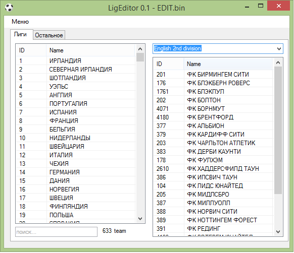 PES 2015 LigEditor v0.1 - Программа для редактирования структур лиг.