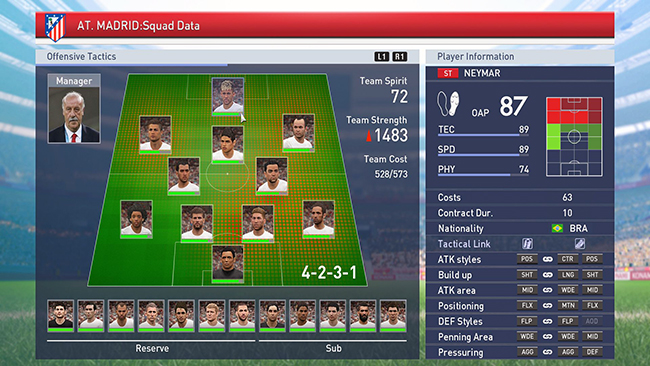 Pro Evolution Soccer всегда был вдумчивой игрой с обилием тактических возможностей. Однако, в последних играх серии, разработчикам не удавалось соблюдать баланс между атакой и защитой. Из-за плохого “интеллекта” защитников атаковать было проще, чем защищаться. В новой части это наконец-то исправили. Студии удалось сбалансировать различные типы схем и тактики. Любители настраивать команду под собственное видение игры будут рады возможностям “гибкой тактической схемы”. Суть в том, что расстановка игроков на поле зависит от ситуации. Можно сделать так, что, когда мяч находится у команды противника, большая группа игроков располагается в обороне по схеме 5-4-1, а отобрав мяч игроки бегут в атаку и выстраиваются по схеме 2-2-2-4 или любой другой по желанию. Можно заранее задать несколько гибких тактических вариантов и менять их по ходу матча не заходя в меню команды и не нервируя паузой своего соперника. Это позволяет моментально реагировать на различные обстоятельства и почувствовать себя настоящим тренером!