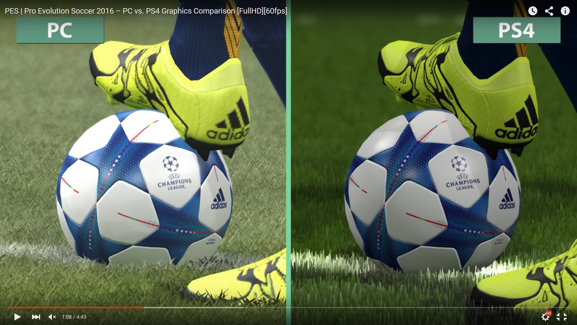 PES 2016 на ПК это немного доработанная версия прошлой части. Изменений минимум. Графика всё та же, но у меня почему-то на высоких настройках игра тормозит, хотя прошлая часть в том же качестве просто летала. В общем, оптимизацию подпортили. Или мне так кажется и мне стоит уже обновить железо. Но судя по комментариям на форумах, не у меня одного такая проблема.