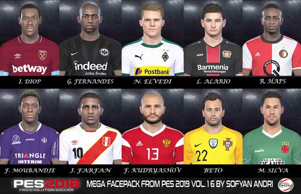 Pes 2019 Mega Facepack Vol.16 - фейсмейкер представил свой очередной набор фейсов для Pes 2019. В архиве большое количество лиц разных футболистов.
