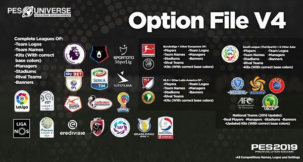 PES 2019 PS4 PES Universe Option File v4 - очередная версия патча от данной команды мейкеров, для футбольного симулятора Pro Evolution Soccer 2019