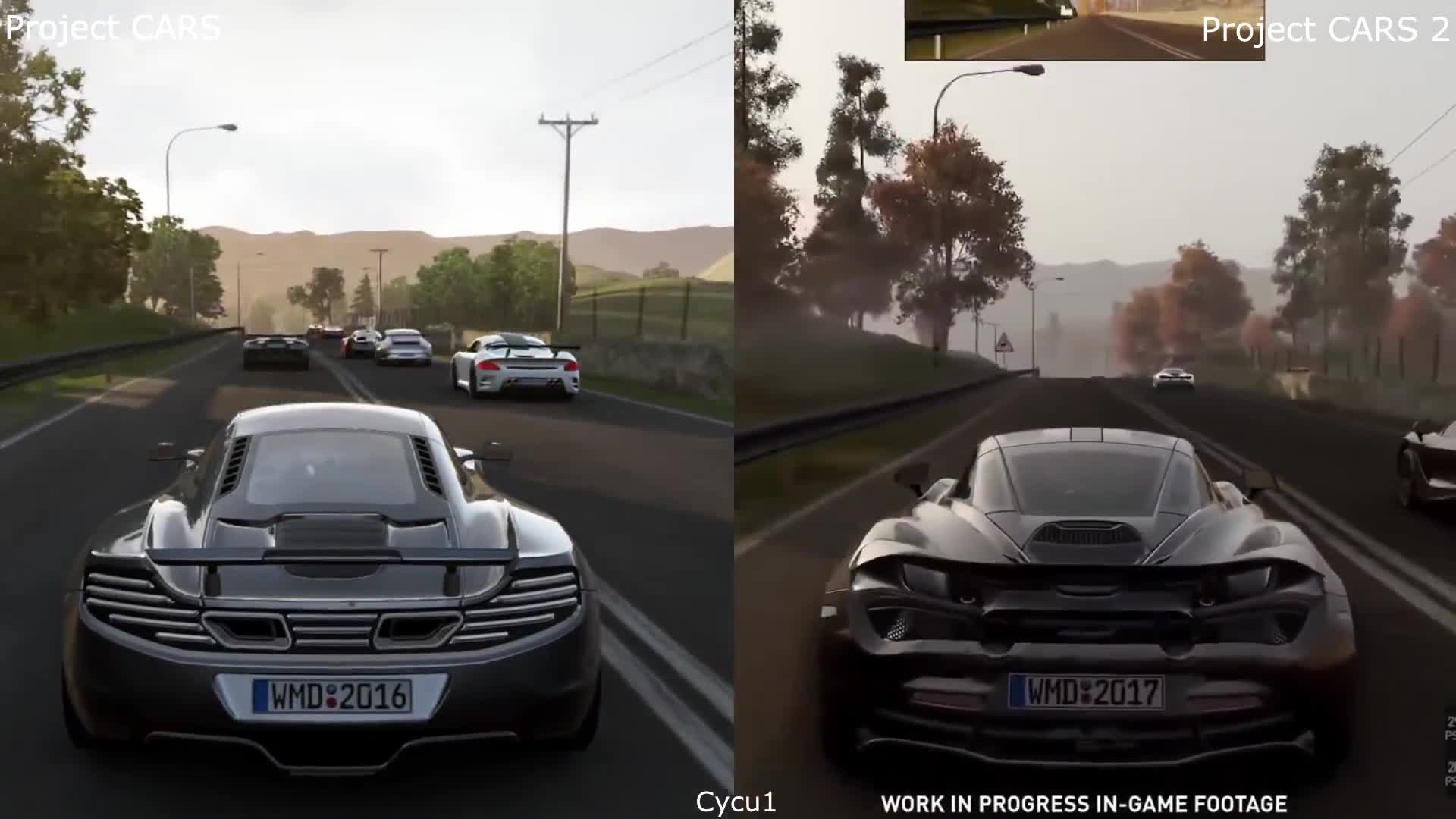 Просто взгляните на кадры Project CARS и Project CARS 2. Если коротко, то разработчики из Slightly Mad Studios уделили больше внимания окружению, так как автомобили представленные в серии и так выглядят максимально правдоподобно. Видно, что разработчики обратили внимание на освещение и детальнее проработали ландшафт и прочие мелкие детали.
