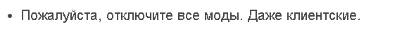 - Пожалуйста, отключите все моды. Даже клиентские.
