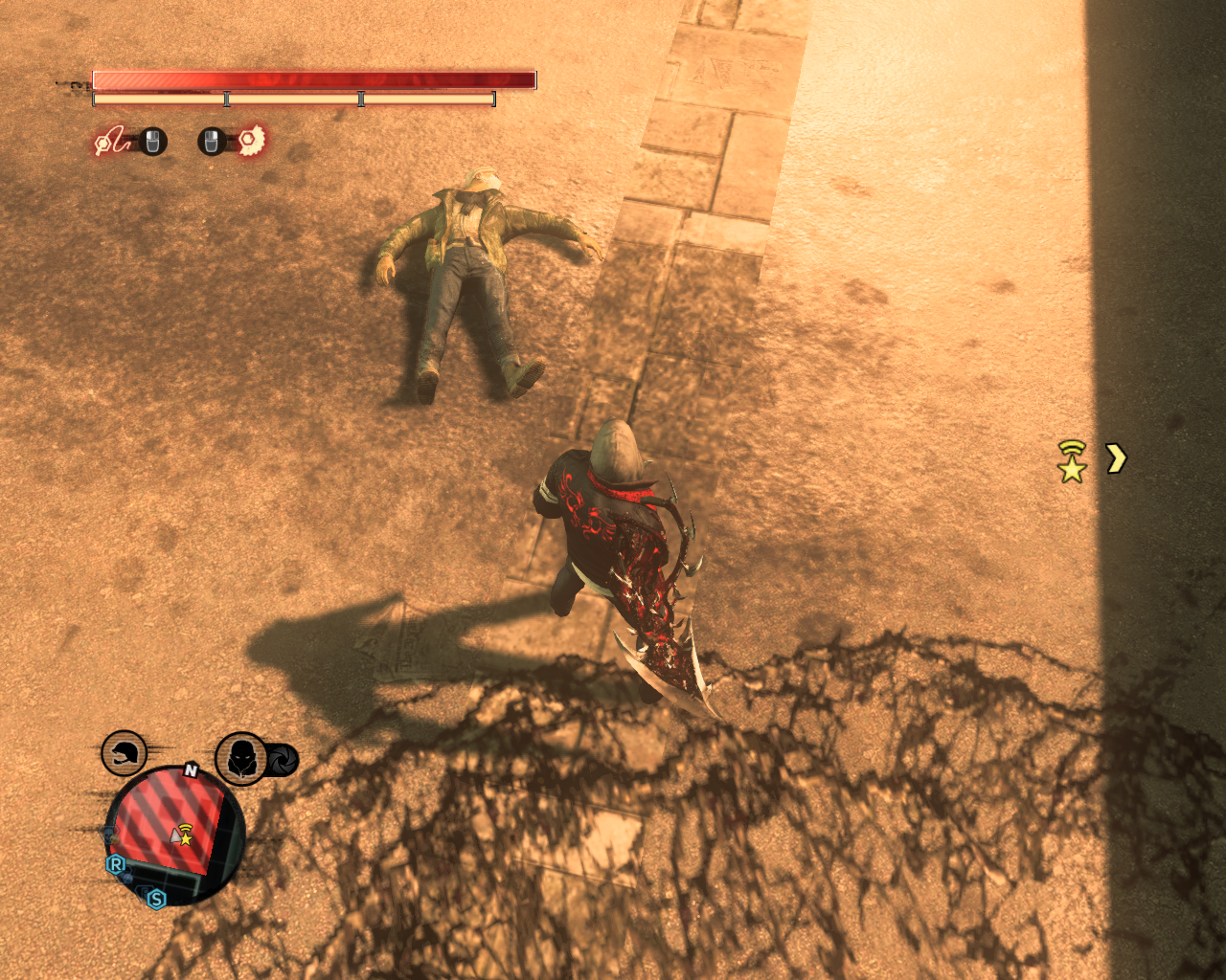 Сегодня баг был: на базе военных взял учёного за горло и кинул его в небольшое окно. Так там он и остался. Он "сросся" со стеклом: голова с одной стороны, а пердак с другой. Но это тело ещё умудрилось в таком положении подняться вверх на несколько метров и он уже был соединён не со стеклом а со стеной. Какое-то время так в стене и болтался. Потом пердак у него перевесил голову и с той стороны где была рука осталась только кисть руки, а там где пердак - всё остальное тело. После он начал медленно спускаться на пол. В итоге, после спуска так и остался на полу, кисть так и осталась в стене.