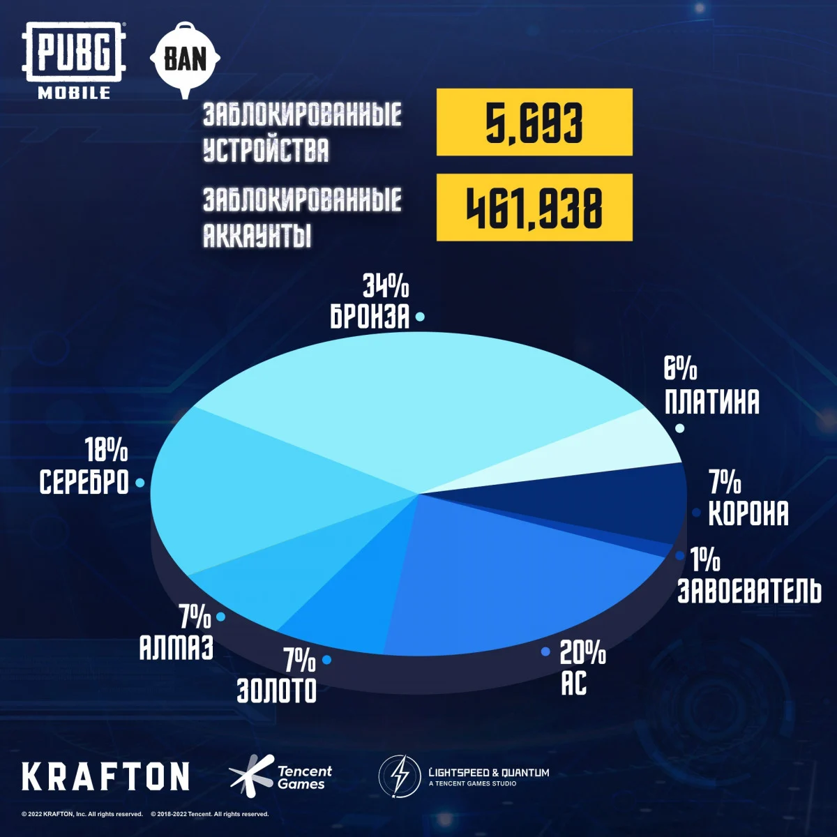 Разработчики мобильной версии PUBG навсегда забанили 461 тысячу аккаунтов читеров (и пять с половиной тысяч устройств) за период с 15 по 21 июля 2022-го года.