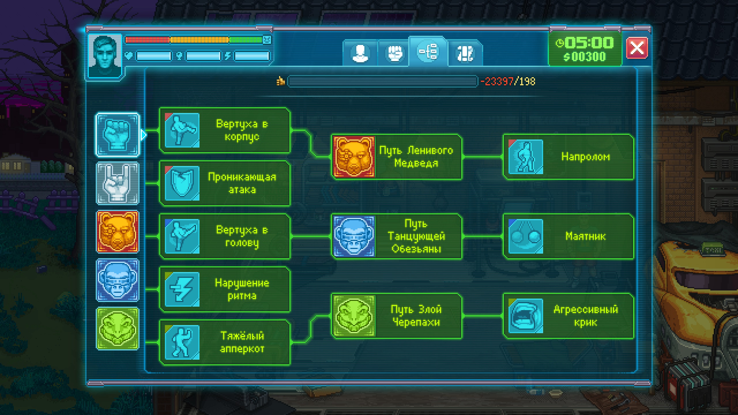 - Открыты все стили боя и навыки (прокачены до мастера).