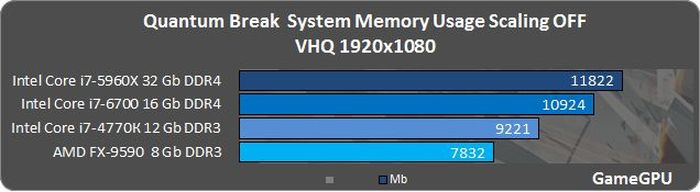 При наличии системы с 8 гигабайтам Quantum Break потреблял все 8 гигабайт ОЗУ. При наличии системы с 12-ти гигабайтами потребление ОЗУ всей оперативной памяти составило 9.2 гигабайта. С системой на 16 гигабайт потребление общей памяти составило почти 11 гигабайт. И при наличии 32 гигабайт оперативной памяти система потребляет 12 гигабайт ОЗУ.