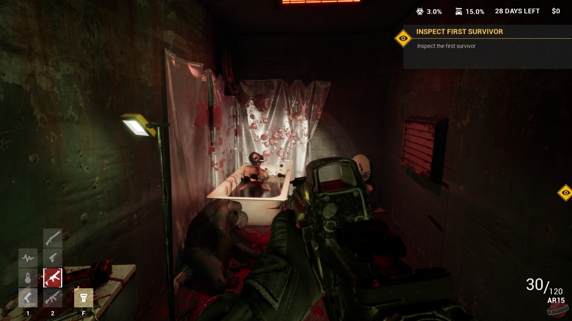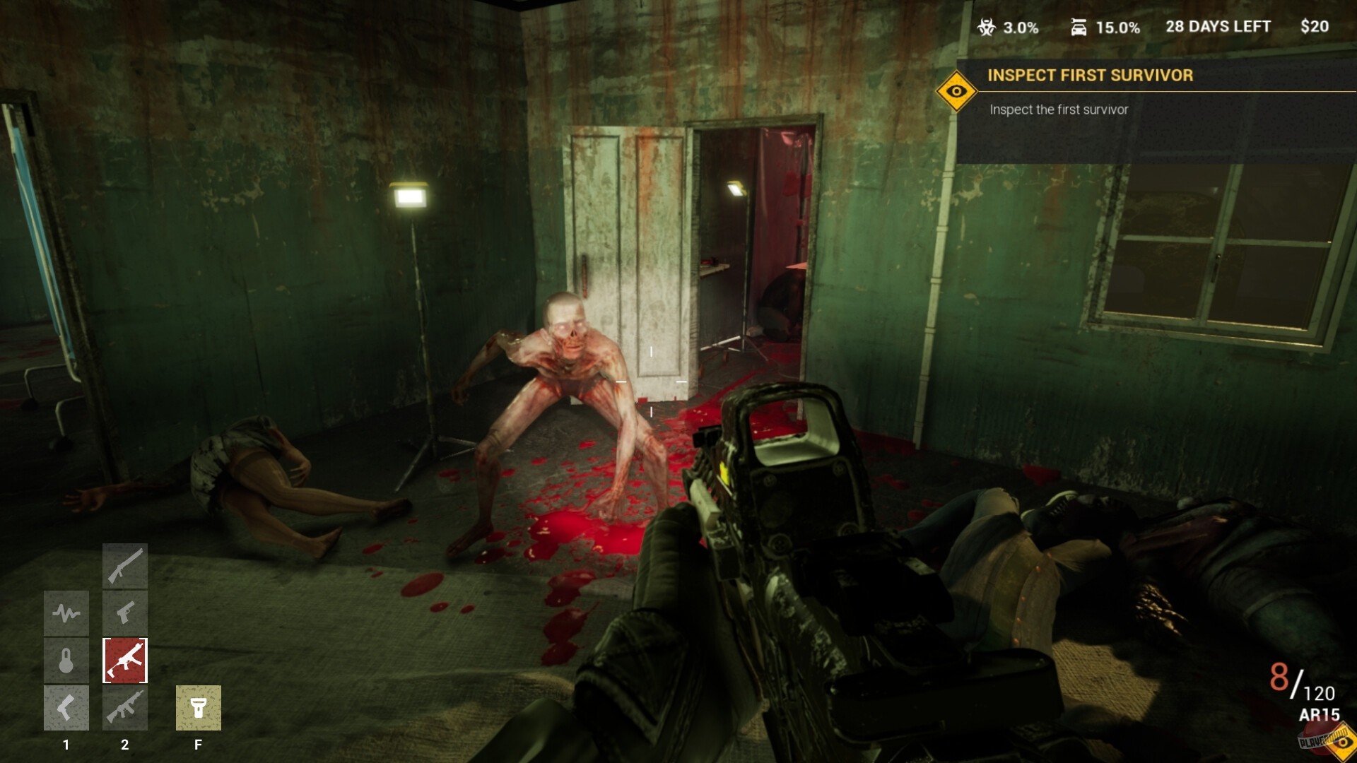 Досматривай выживших в Зоне карантина Чикаго и определи, кто заражен и станет зомби. Никакого строительства базы - только осмотры и стрельба! У тебя 30 дней до прихода армии. Дождись армию, отремонтируй машину и проберись через Чикаго в главный пункт досмотра, чтобы спасти своего младшего брата.