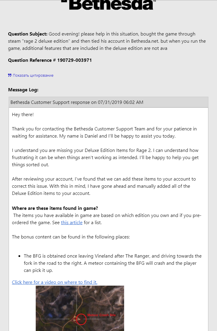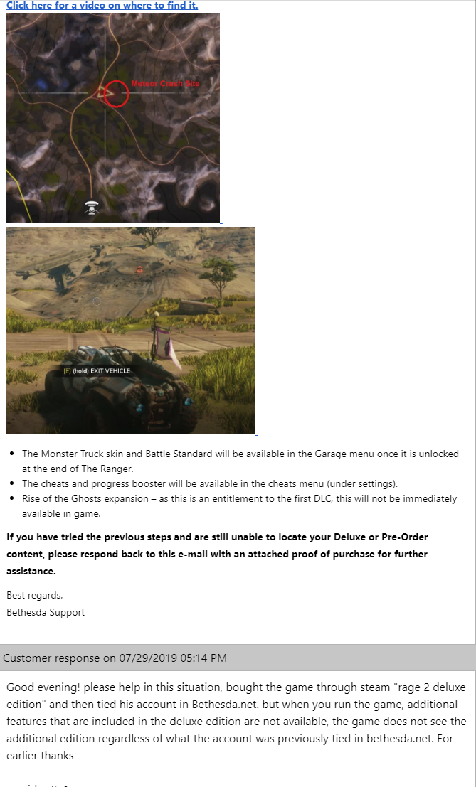 Многие столкнулись с проблемой, а именно: в приобретение игры "rage 2 deluxe edition" в Steam, данный обещанный контент отсутствовал в самой игре, не зависимо была привязка учетной записи Steam к аккаунту Bethesda.net, тем не менее BFG9000 и другие плюшки за "deluxe edition" были не доступны, и предлагалось купить их за отдельную внутреннюю валюту.