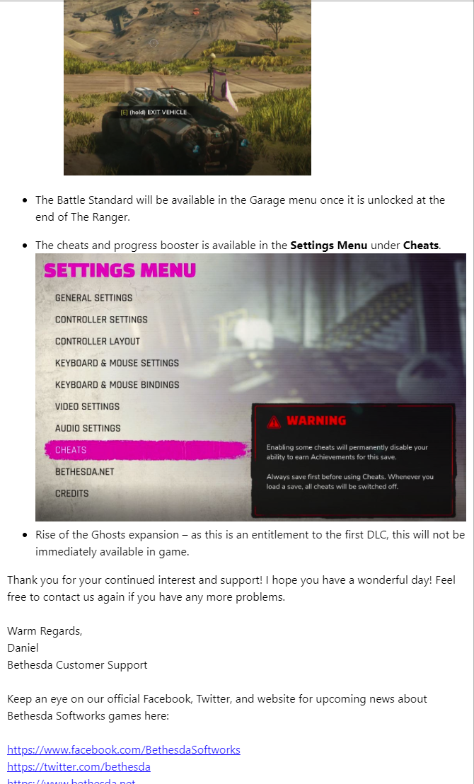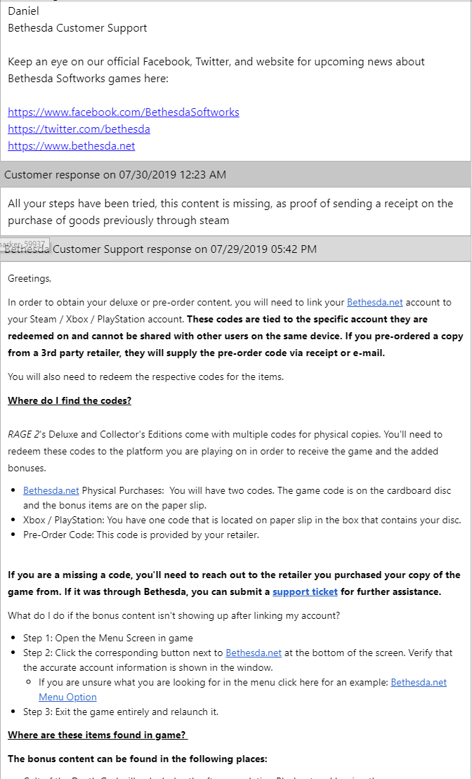 В результате, не пришлось долго ждать ответа от Bethesda Support, в течение двух рабочих дней, мою проблему устранили, за что большое спасибо Даниэлю из техподдержки Bethesda Support.