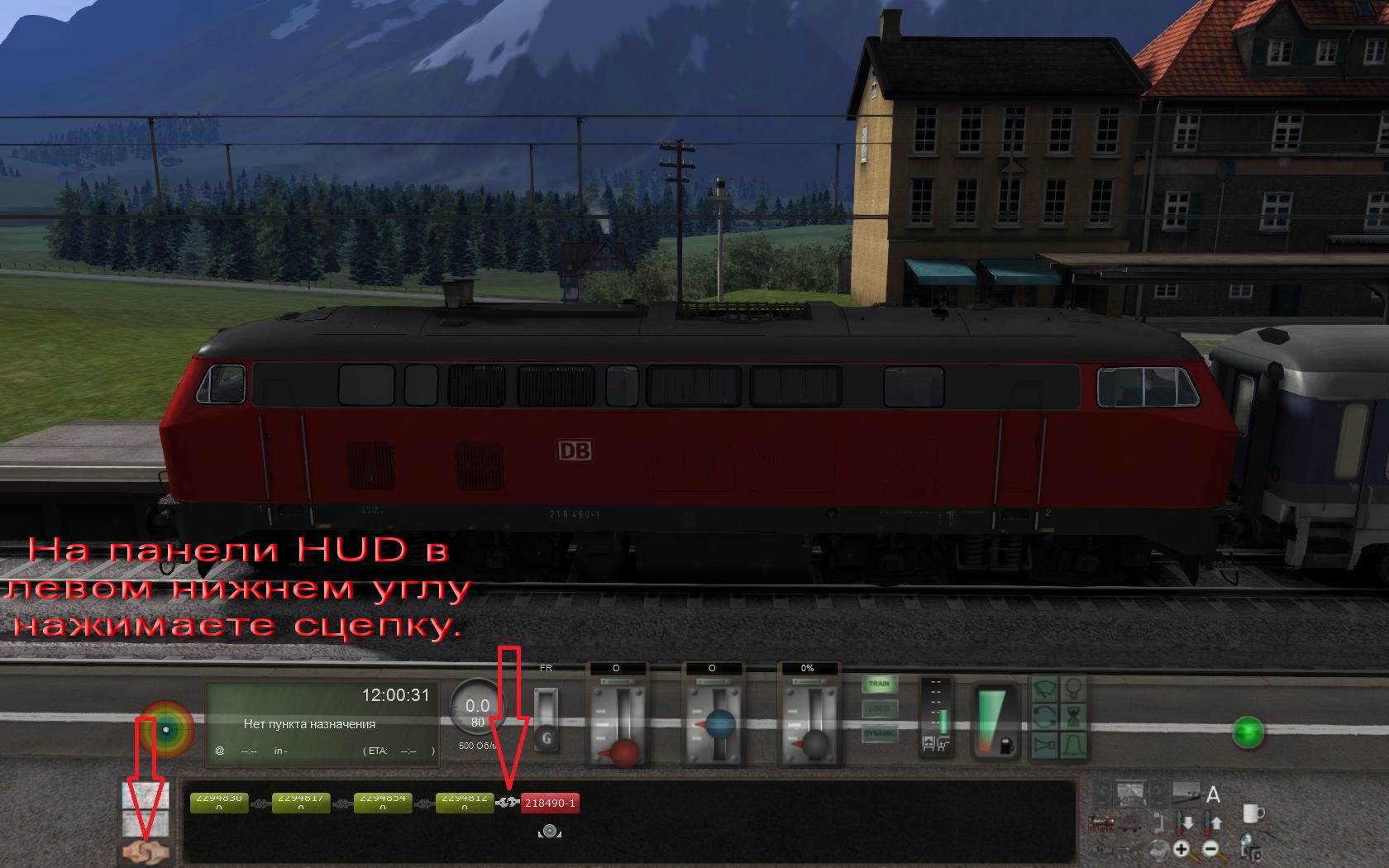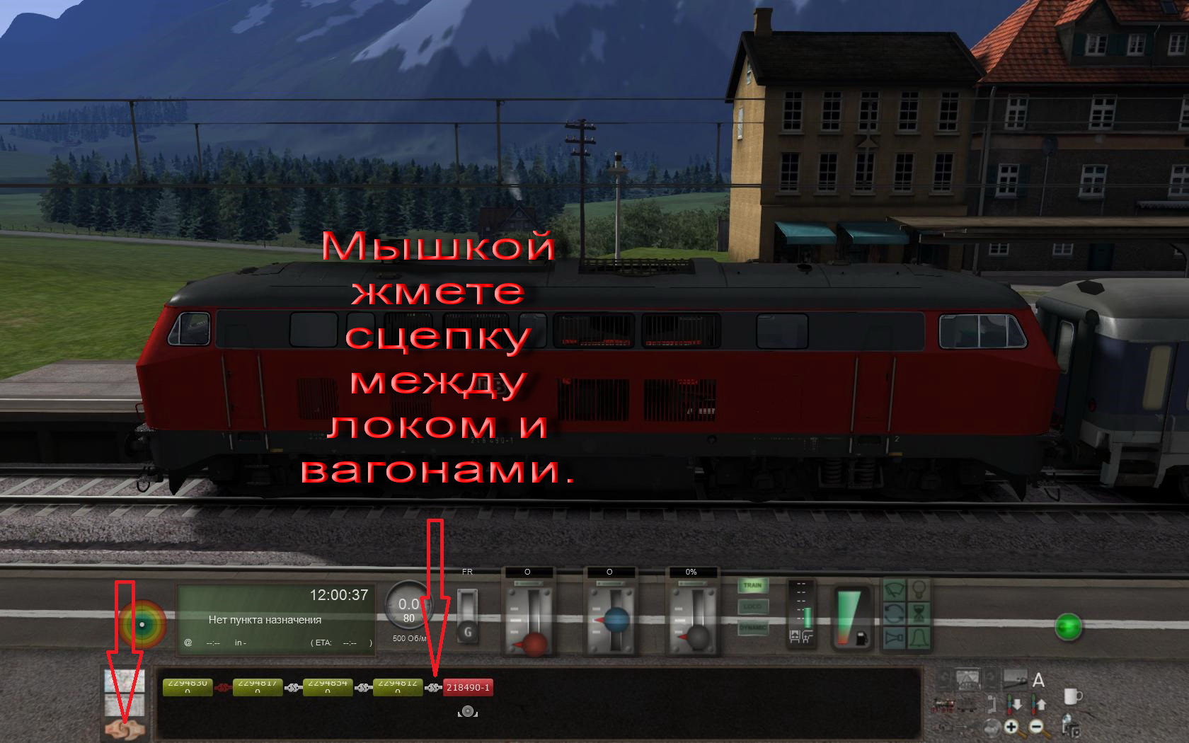 Подогнал локомотив к вагонам, кликаю на сцепку - не сцепляет. Жду помощи.