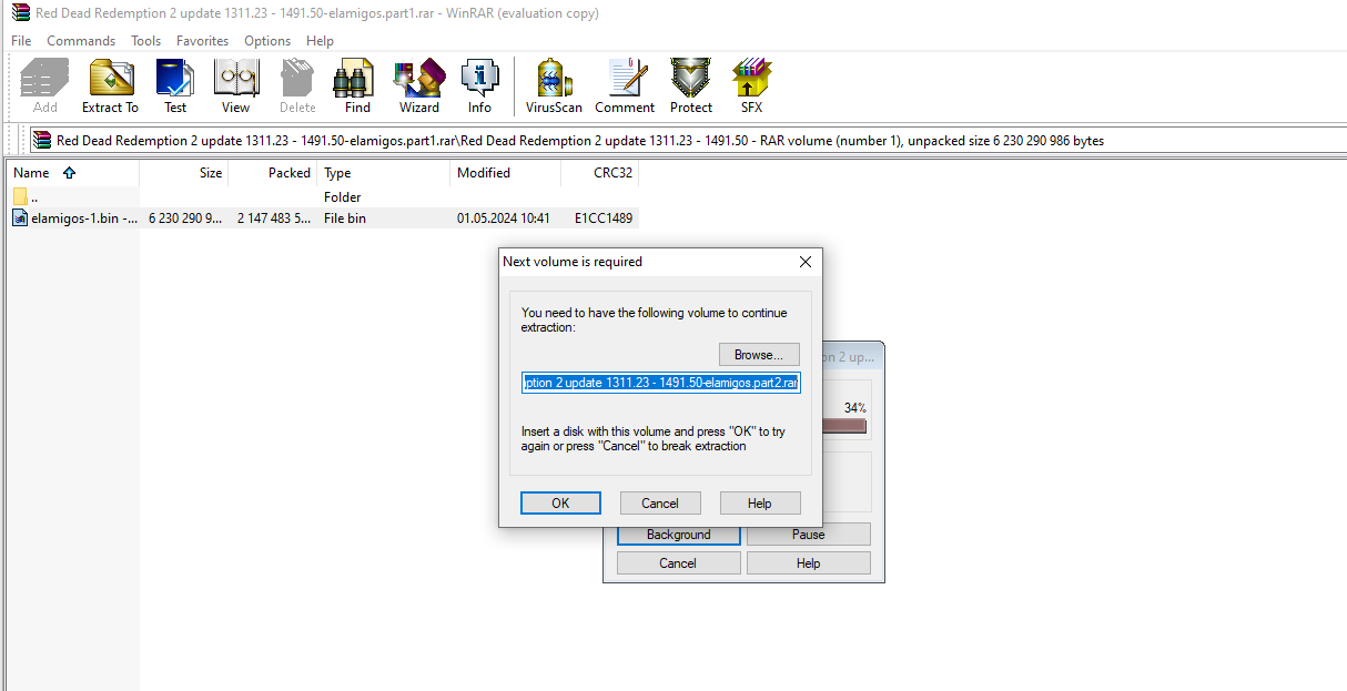 Скачать все 3 архива: part1, part2 и part3. Только затем их разархивировать.