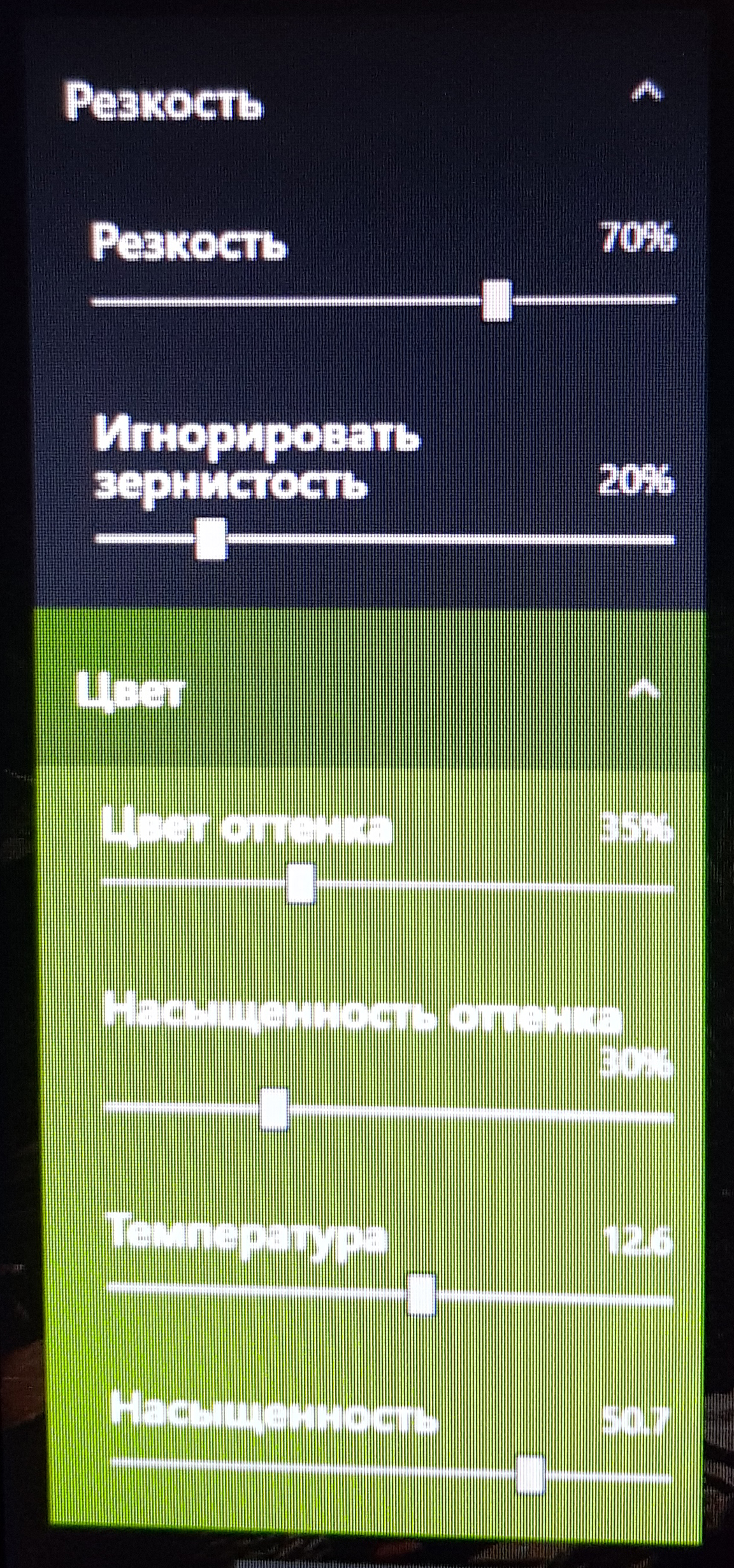 Настройки фильтра. Я добавил еще цвет,он на любителя. Если краски кажутся слишком яркими, можно снизить "насыщенность" (последний параметр) или вовсе не добавлять параметр цвет, если полностью устраивает стандартная цветовая гамма. Фильтр жрет 1-3 фпс