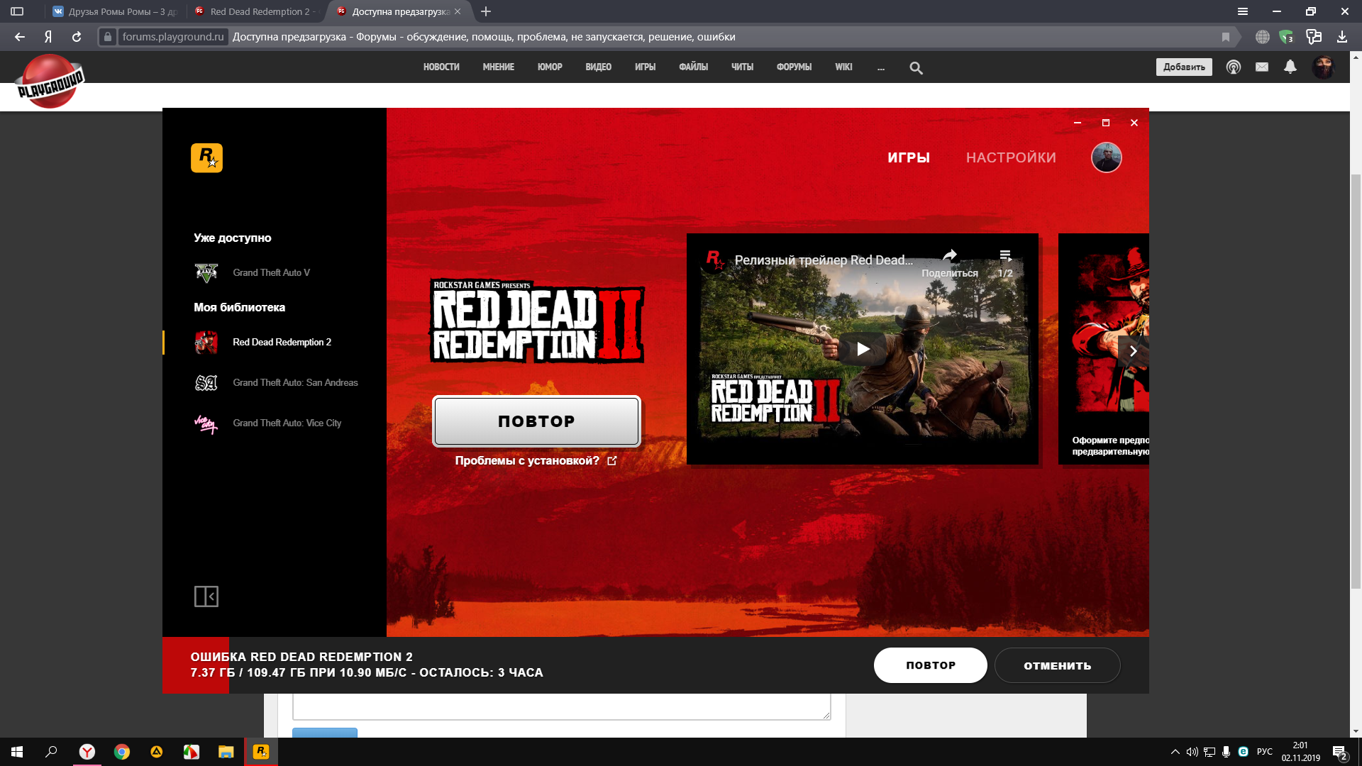 решил предзагрузить RDR2 и столкнулся с такой проблемой, каждые 1.85 гб - "Ошибка загрузки, попробуйте еще раз", нажимаю "повторить" и через очередные 1.85 гб очередная ошибка!
