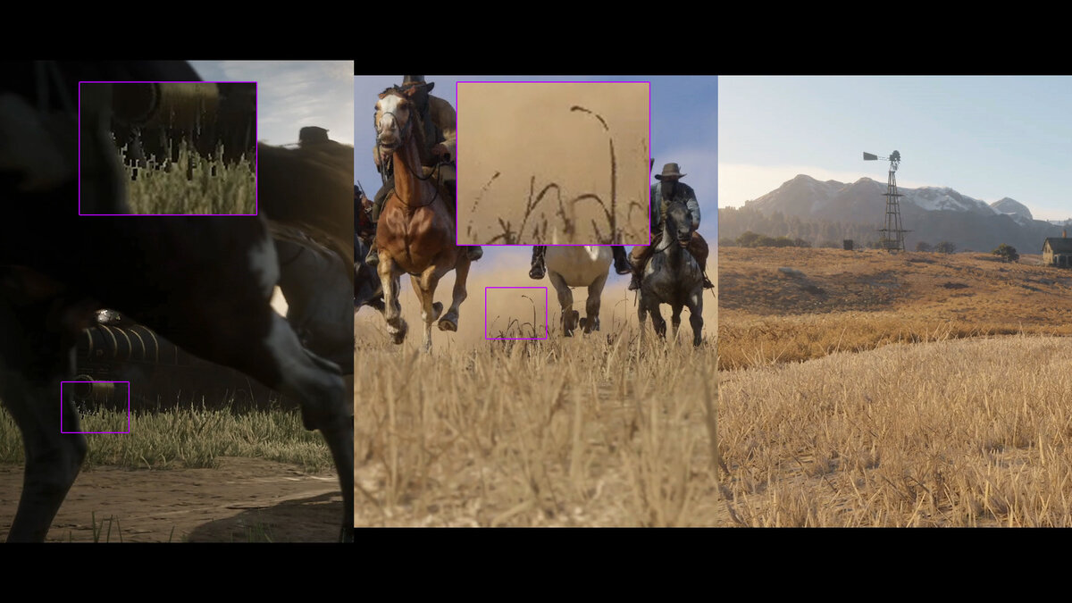 Животных, увы, сравнить не удастся, а вот траву – да. На консольных видео трава выглядит хорошо только на близких расстояниях, а на дальних превращается в грубое и не всегда прорисованное месево. Впрочем, это связано еще и с другим параметром, о котором скажу ниже. На ПК такого замечено не было.