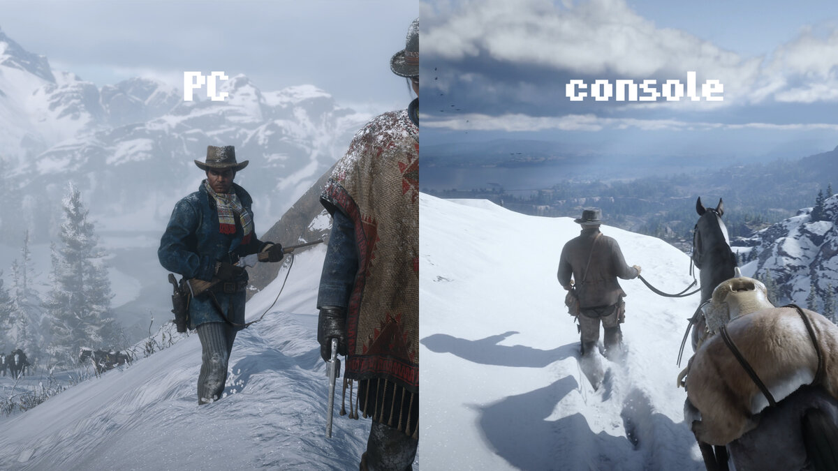 К сожалению, на трейлере для ПК этого нет, поэтому сравню со скриншотами от самих Rockstar – следы в геймплейном видео для консолей более грубые, на скриншотах для ПК – более детализированные. Впрочем, уверен, кто-то скажет, что консольная версия выглядит лучше.