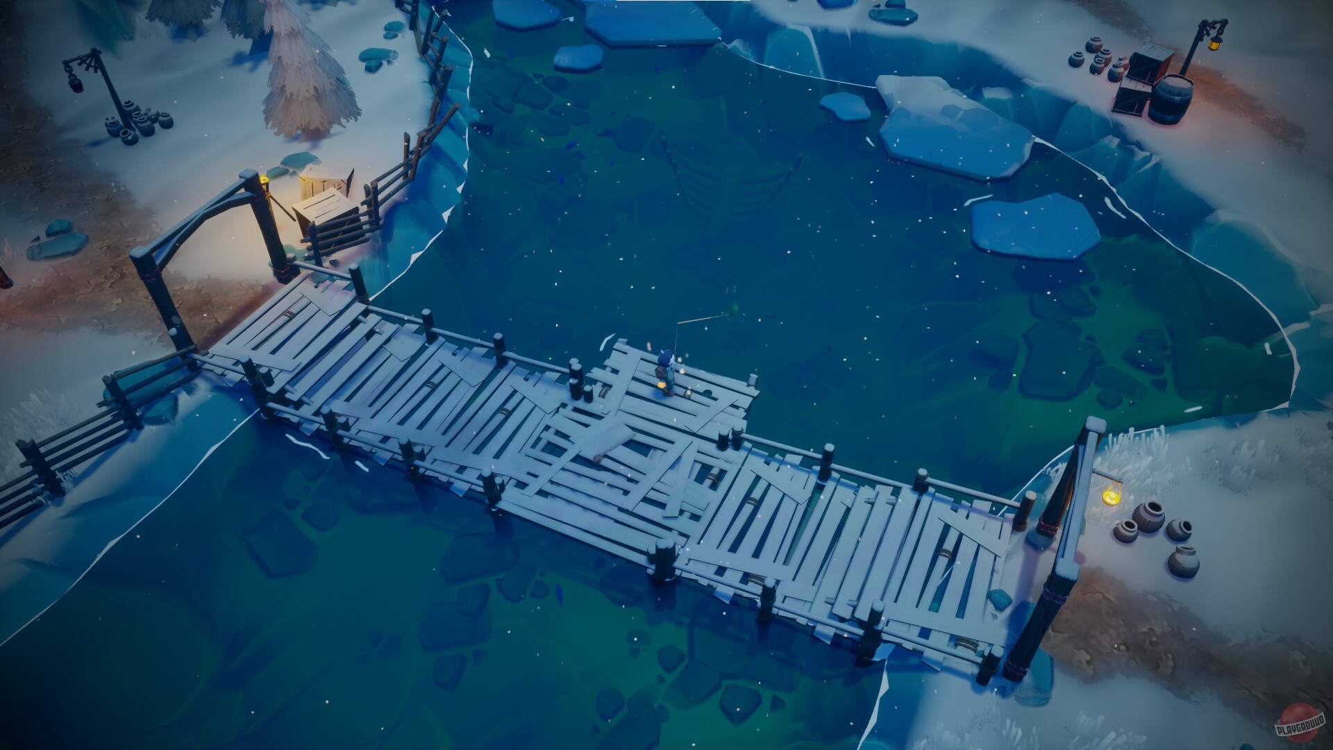 Геймплей вращается вокруг стандартного набора активностей: ходим, светим фонарём, ловим рыбу, собираем ресурсы и строим разные штуки, чтобы помочь местным жителям. Пока помогаем им восстановить руины их домов, они, само собой, отвечают нам добром — открывают новые лавки и прочие удобства.