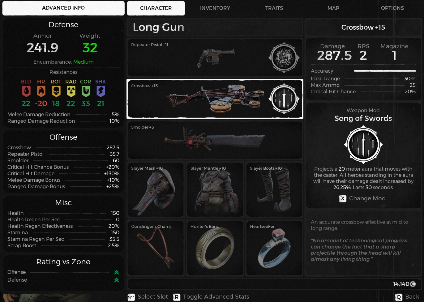 Ещё есть ДПС билд, заточенный под ближнюю дистанцию. Дробовик под сетом Утильщика, огненным бафом и песнь мечей, а так же из экипировки кольца, повышающие урон и амулет стихийный.