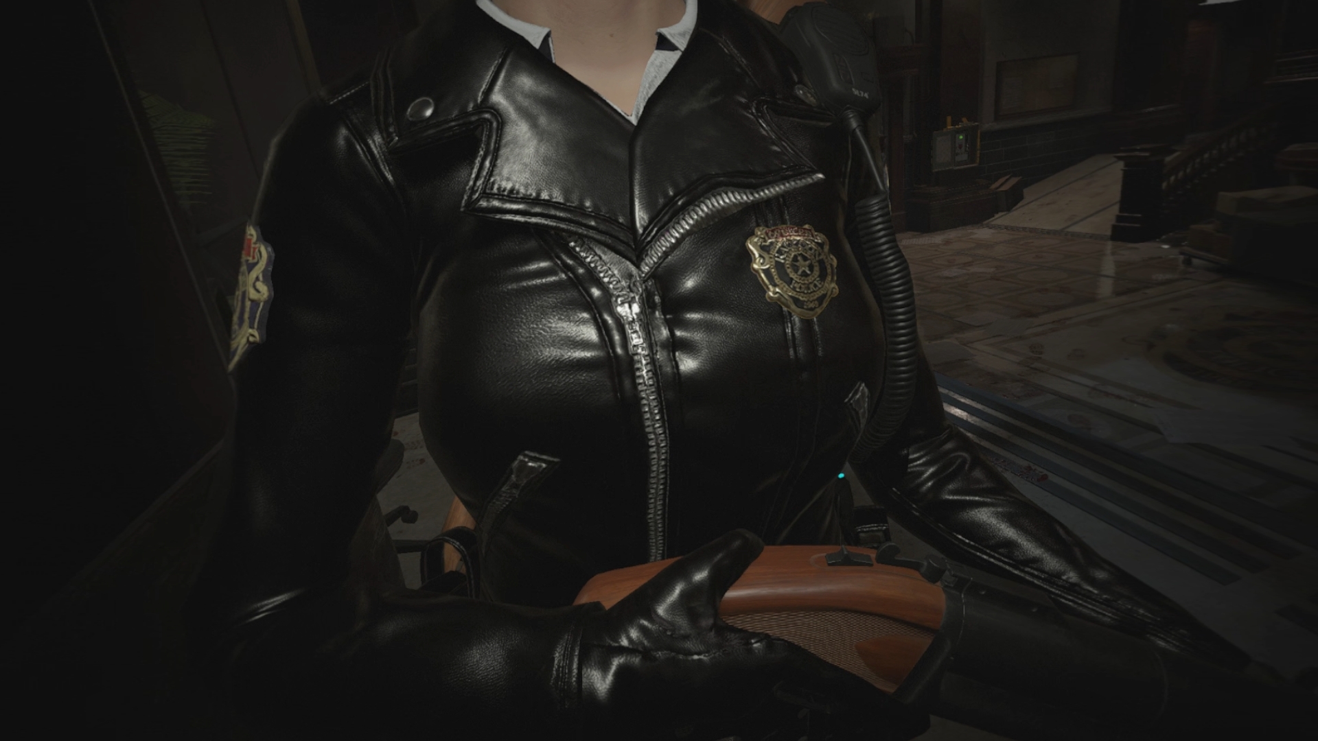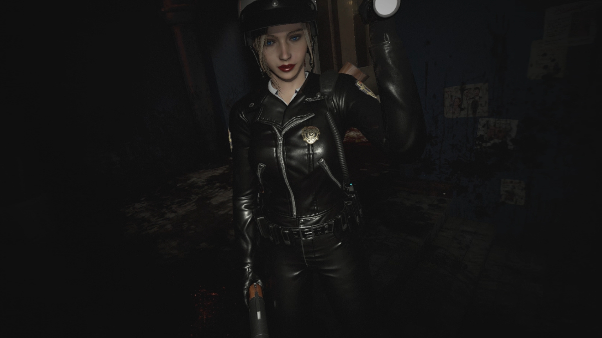 Клэр Редфилд носит стильную черную форму ретро полицейского. Переработаны текстуры мода "Claire (RPD) Retro Moto Cop " - увеличено разрешение карты нормалей.