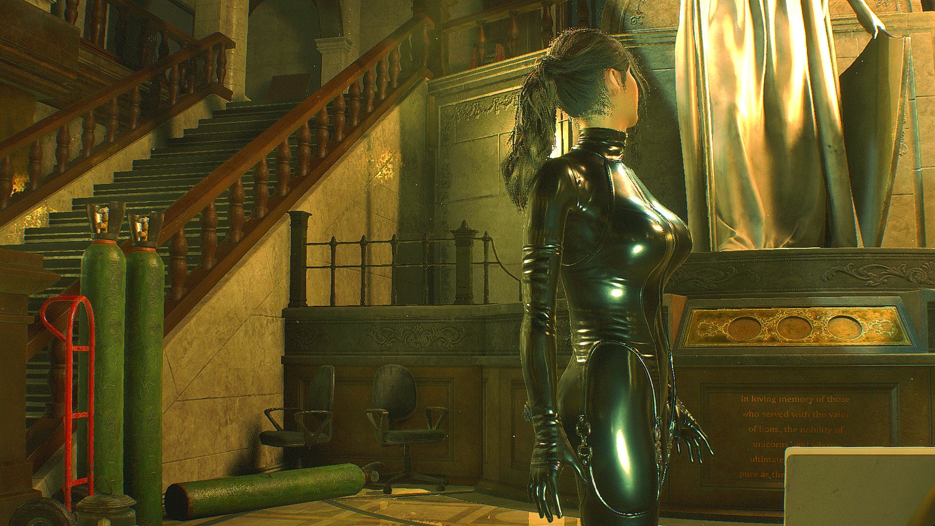 Yeah, this mod doesn't work. If I understood modding the Resident Evil games as much as I do Fallout 4 maybe I could say why. All you get is a missing collar bone area and no outfit at all. Near as I can tell, Dr. Slump never created a RE2 version of this mod, just RE3, which means someone else attempted to convert it, and failed.