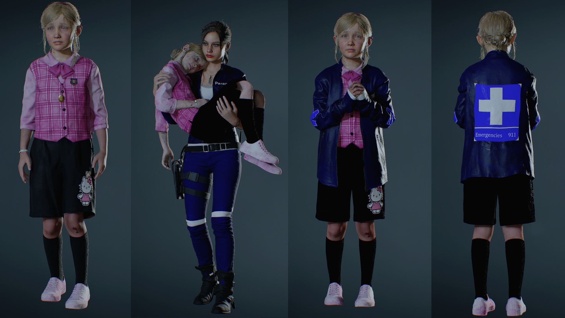 Модификация для хоррора Resident Evil 2 добавляет в игру новый костюм в стиле фельдшера для Клэр. Также мод изменяет стандартную одежду Шерри, а костюм для Клэр имеет несколько вариантов: с курткой и без нее. Вся новая одежда имеет корректные анимации во время игры и динамический вид - может стать грязной, мокрой и т.д.