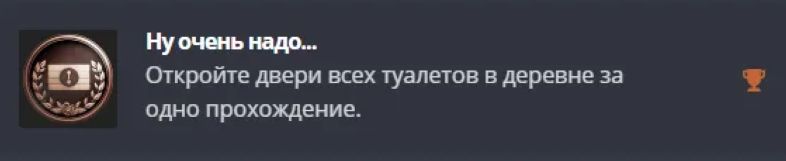 На портале Exophase был опубликован полный список достижений экшен-хоррора Resident Evil Village. Всего вы можете разблокировать в общей сложности 50 трофеев: (1x платина, 3x золото, 6x серебро и 40x бронза).