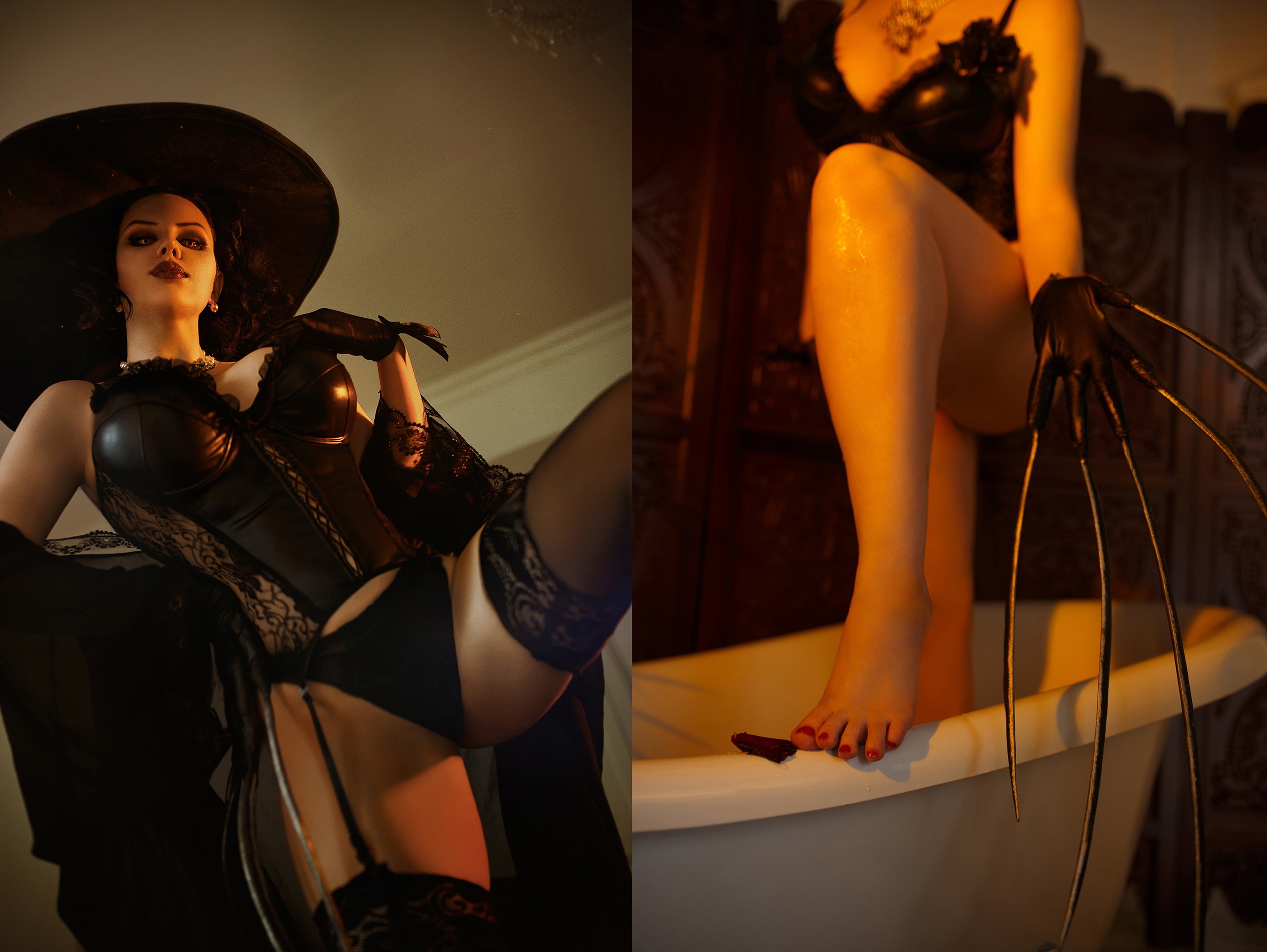 И еще один сет с Леди Димитреску. Захотелось сделать красивых фоток с ней в черном белье)