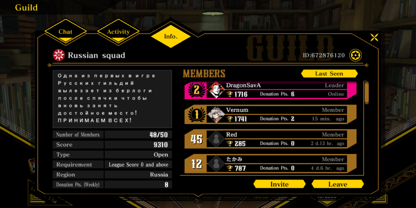 Так, ко мне присоединились несколько игроков, мы обмениваемся картами и немного переписываемся, так что моя гильдия больше не мёртвая. Но мы по-прежнему в поиске новых участников и будем всем рады: