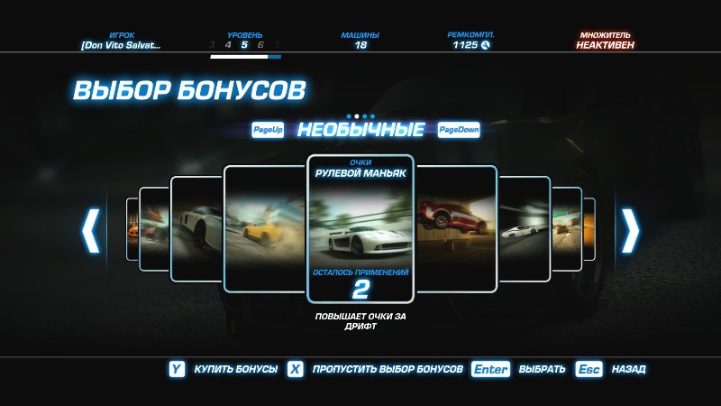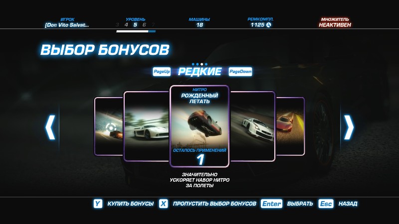 Также стоит отметить,что после успешной гонки (1-ое или 2-ое место),вам предлагают выбрать,как это стало модно (карточки) на выбор,в каждой из которых,находится любой скажем так (перк),которым можем воспользоваться в гонке,только один раз.Такие например как (улучшенное сцепление с трассой,мощное нитро и другие)