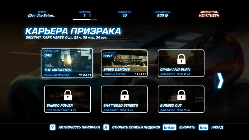 Есть также состязания,где вам предлагают выиграть одну из 3 предоставленных машин,у каждой соответственно имеются характеристики,которые в свою очередь после успешной гонки,можно прокачать.