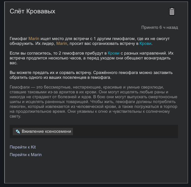 Мне пришел квест на крушение с корабля с гемофагом, которого я захватил и разобрал на органы попутно убив эвтаназией. Вопрос в том, что смогу ли я как то получить гемофага или квест одноразовый? Я думал может получится получить квест еще раз как с механитором.
