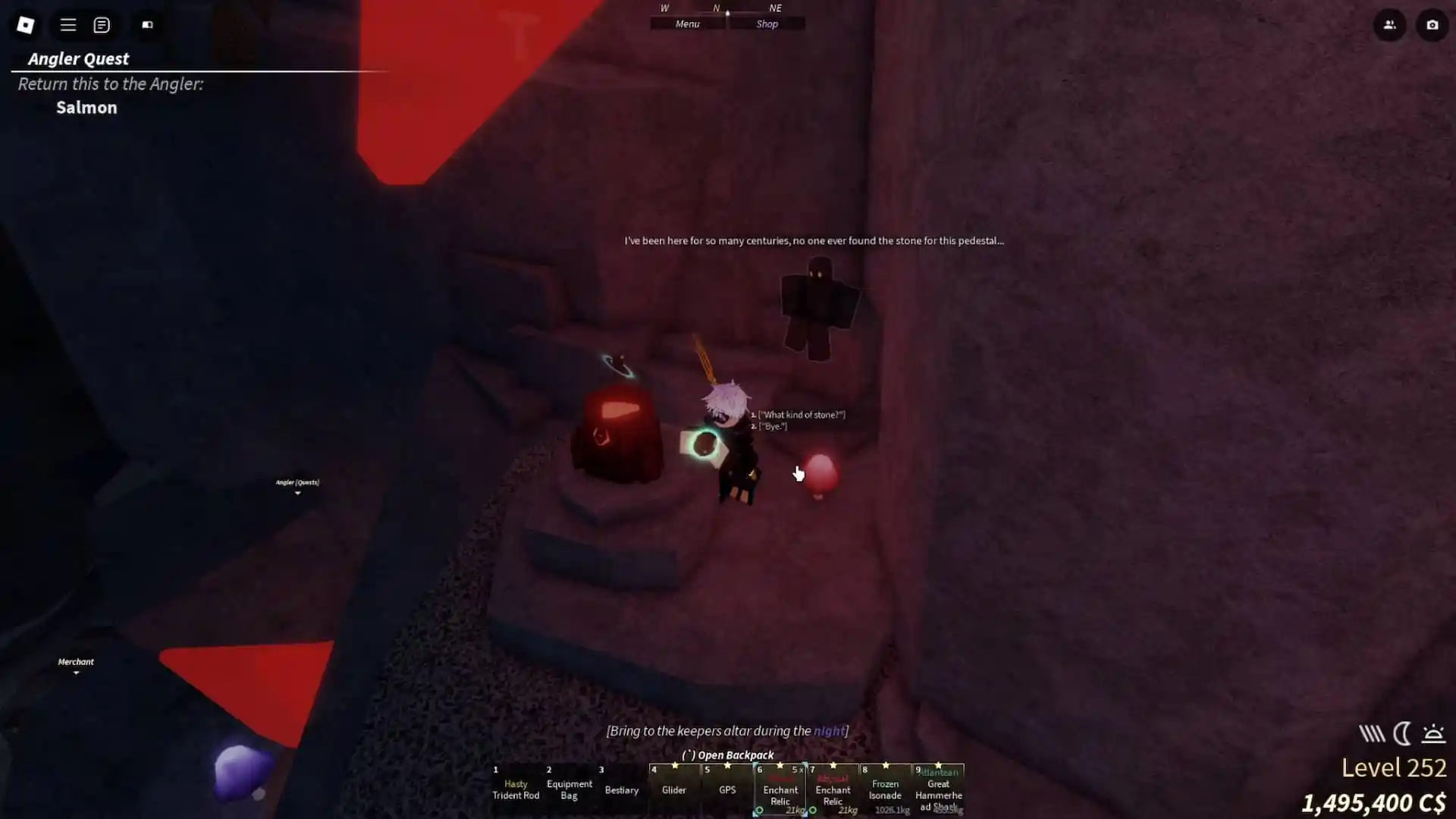 - Проклятый алтарь (1060, -635, 1315) — Используется для размещения проклятой реликвии улучшения (необходима для получения Удилища Глубин)