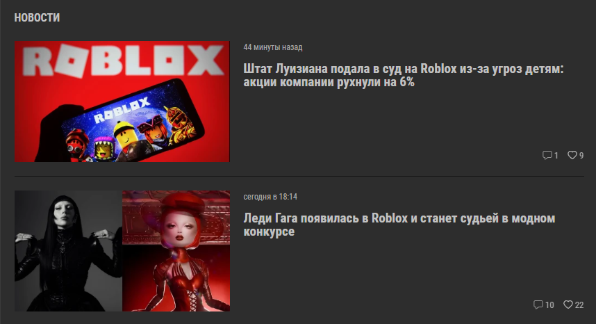 Популярная исполнительница и актриса Леди Гага присоединилась к игровой платформе Roblox. Пользователи обнаружили в игре ее официальный аккаунт.
