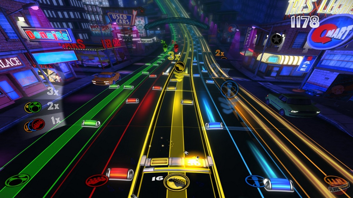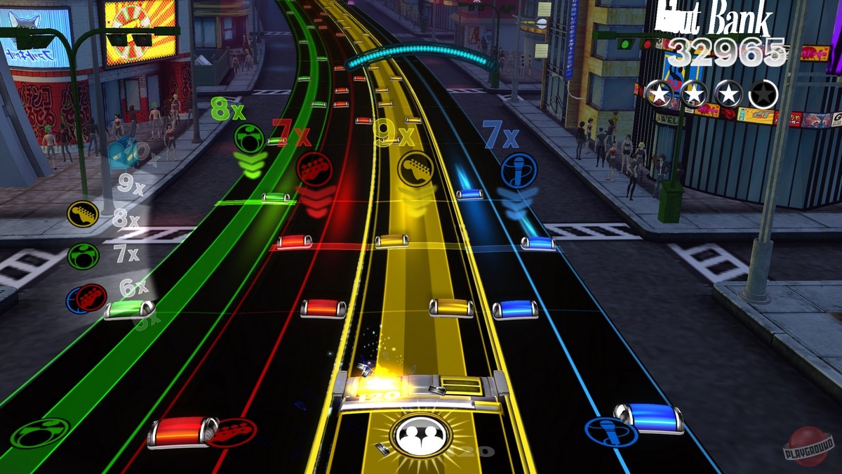 А во-вторых, ее игровая механика была вдохновлена ранними проектами Harmonix Music Systems в лице Amplitude и Frequency – в Rock Band Blitz нам предстоит «скользить» по музыкальным магистралям «Рок-Сити» (Rock City), разделенным на несколько полос, каждая из которых отвечает за звучание одного из инструментов. По мере продвижения по треку игроки могут «умножать» количество заработанных очков, не пропуская ни одной встречающейся ноты, и заодно активировать различные «способности», позволяющие, скажем, поручить исполнение партии одного из инструментов «виртуальному» напарнику.