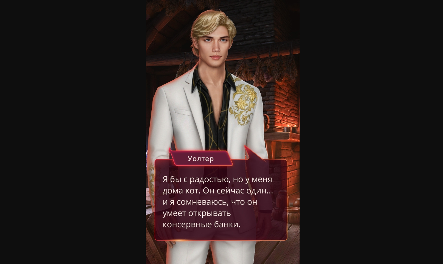 - (Поцеловать его / её.) (101 алмаз) - интим-сцена, кат-сцена, переход к доп. выбору