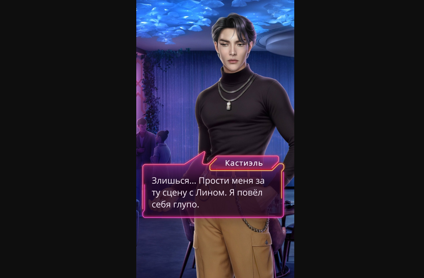 - Но я сумела остаться в сознании. (76 алмазов) +1 Амбиции, +1 Принципы, Вы смогли довериться Кастиэлю, Ваши отношения значительно улучшились, кат-сцена