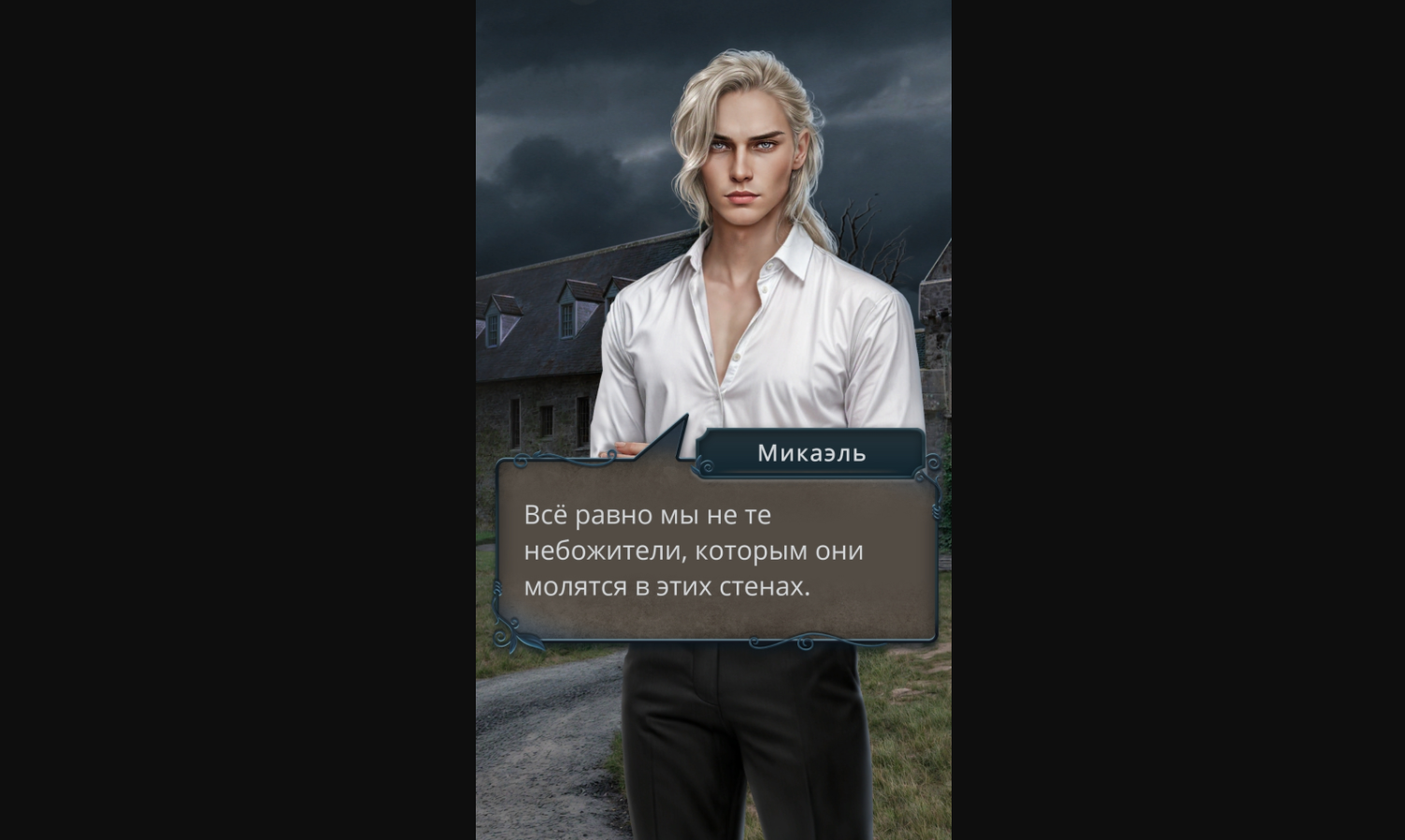 По ветке с Микаэлем, если выбрали "Микаэле". Выбор: "Микаэль..."