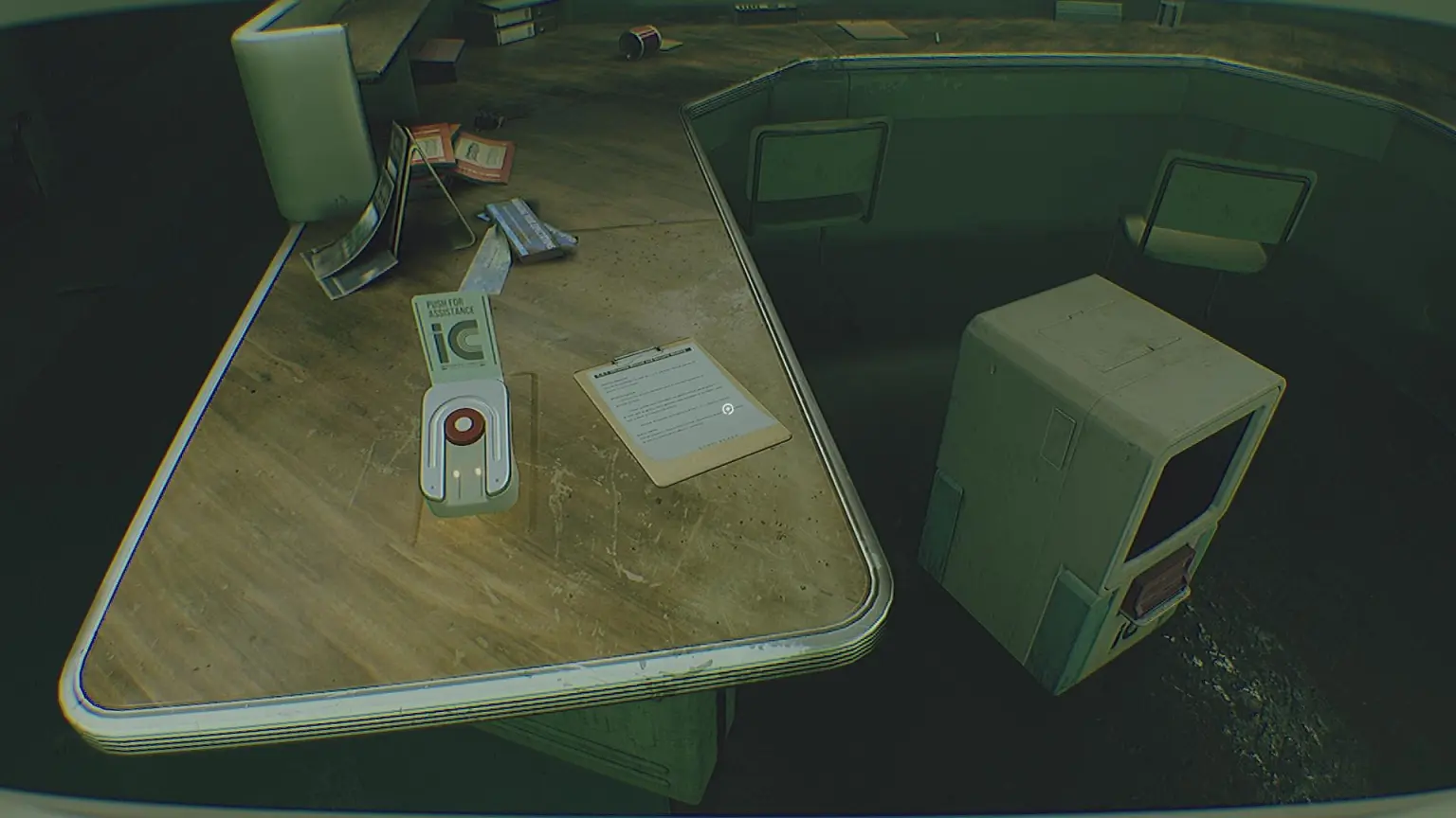 Здесь героя встретит дружелюбный Мини-Робот-Гид. Следуя за ним к терминалу регистрации, введите свой персональный ID. Попытка вызвать лифт обернется ошибкой, но при выборе опции «Бизнес» станет известно о собрании по безопасности. Исследуя саму стойку, можно найти кнопку помощи («Push for Assistance»), нажатие которой реактивирует робота. Этот гид проводит персонажа к служебному входу рядом с трамваем. Взобравшись по лестнице и пройдя коридор до конца, справа найдется люк. Через окно видно, что панель управления находится внутри запертой комнаты.