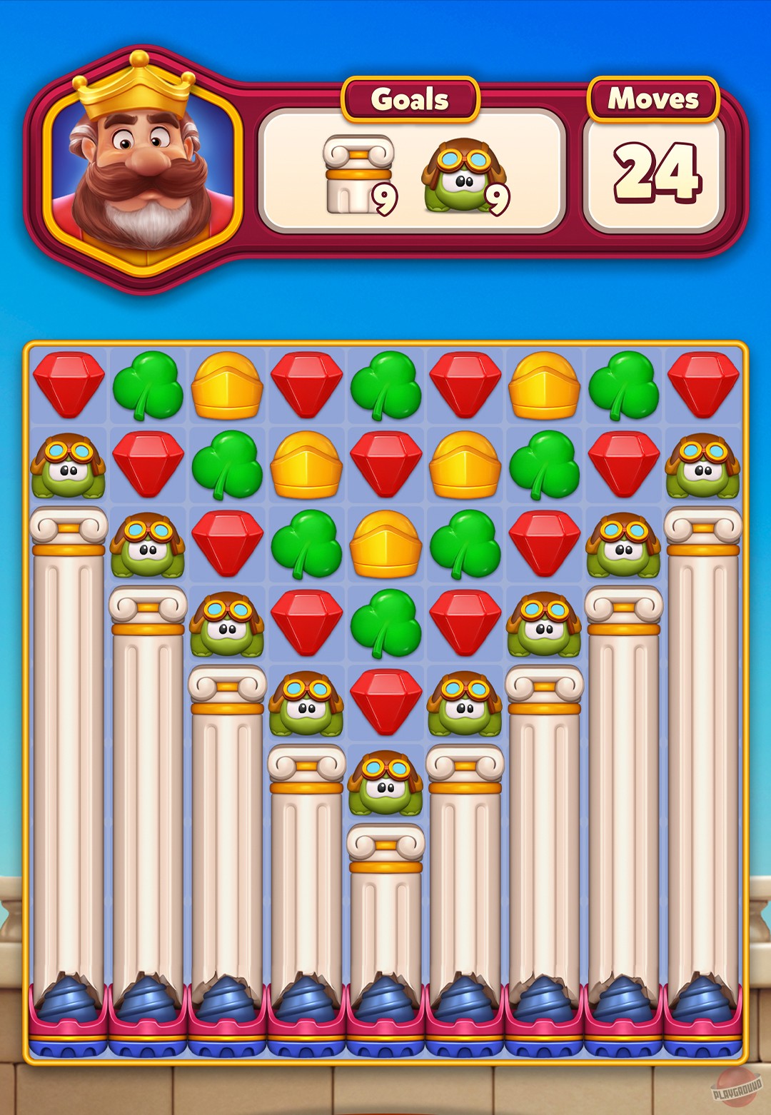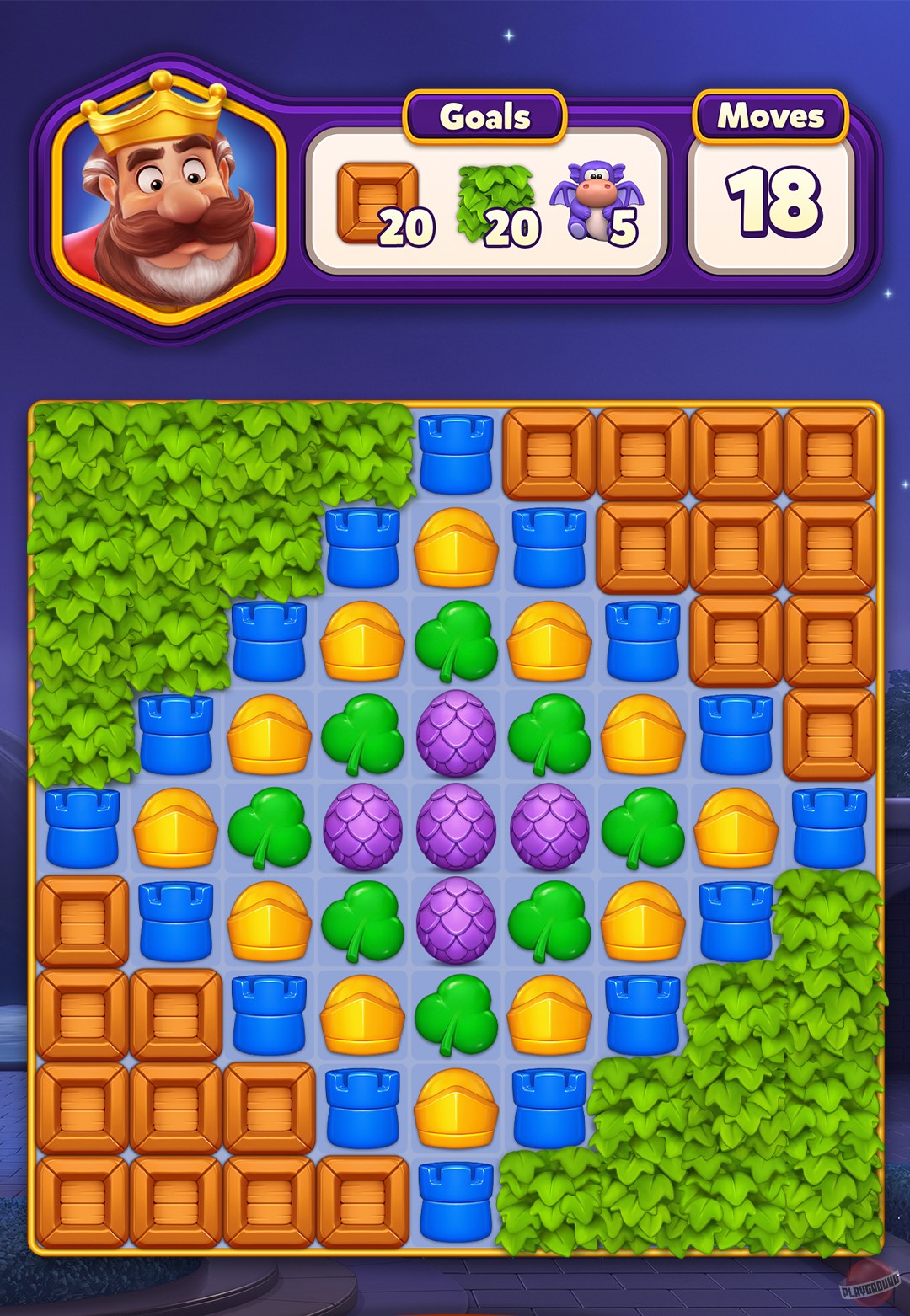 Жанр всё тот же — «три в ряд». Только теперь вместо одного короля с дворецким и собакой нам подсунули целую ораву персонажей: брата того самого короля из Royal Match, дворецкого (видать, по наследству передался), строителя, казначея и принцессу впридачу. В игре даже есть простенький сюжет: на героев напал «Тёмный Король» и разрушил их королевство. И теперь вся эта компания плывёт на корабле искать новый остров, чтобы построить там замок. Да, вот такая глубокая драматургия встречает вас в начале игры.