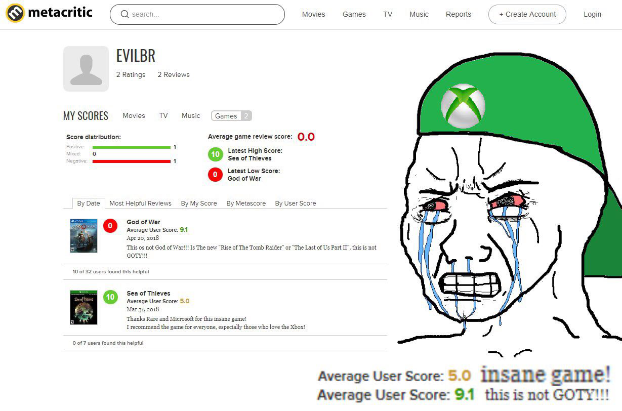 william1992 Какбы 90% NMS вернули через возврат средств, а SOT всем нравится, кроме агробыдла на pg (Которого, большинство).