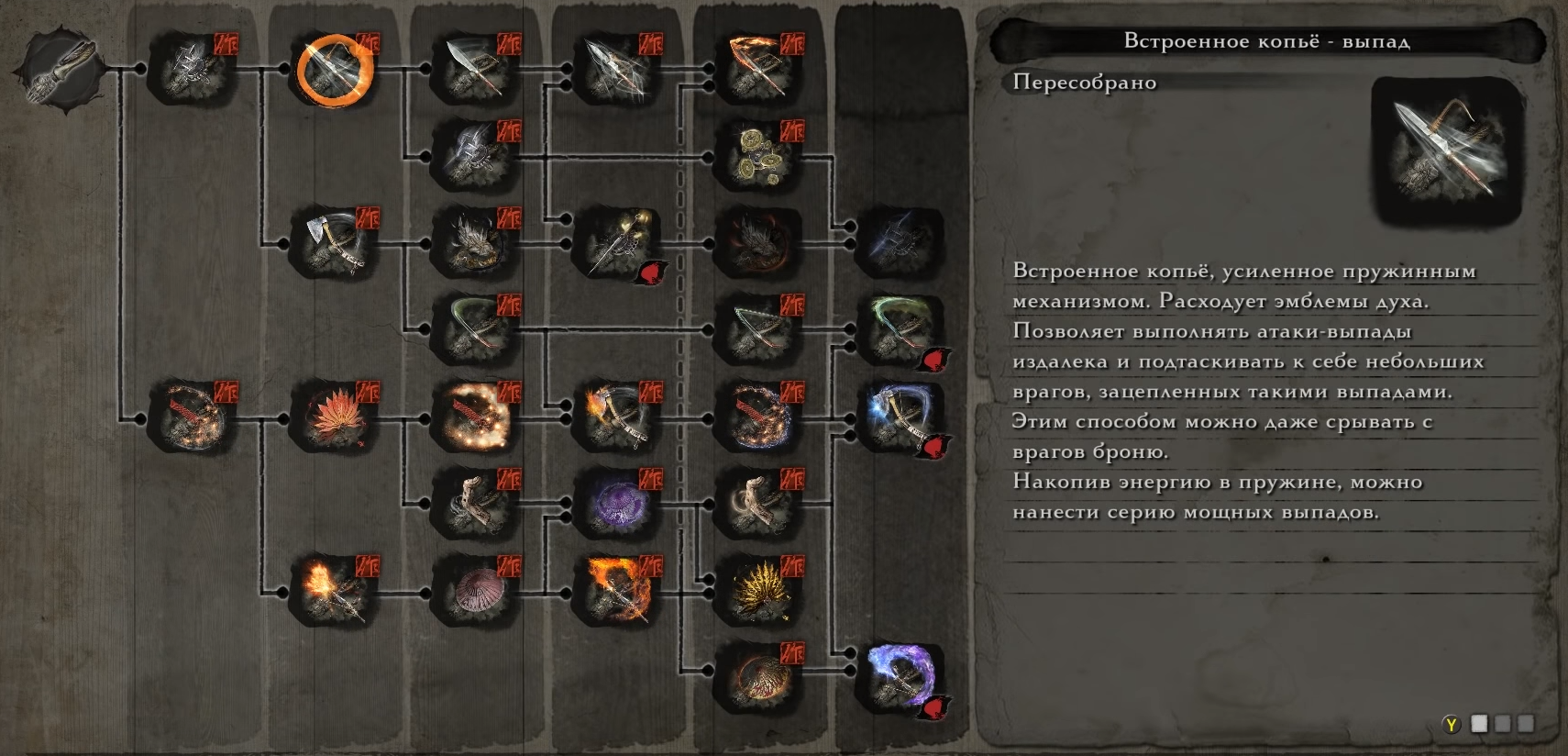 UPD: Только что проверил, даже не прокаченное копье срывает броню, прокачка дает только новые приемы с зажатием кнопки.