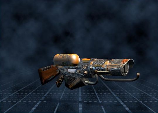 Описание: это эксперементальное оружие использует летучее горючее, чтобы выпускать струю пламени. Чрезвычайно эффективен из за больших мас органики, посколько огонь охватит даже частично скрытых врагов. Оружее преднозначено против больших скоплений врагов всех видов.