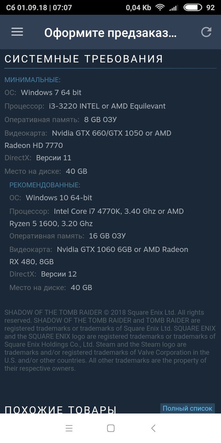 Рекомендуемые системные требования Shadow of the Tomb Raider