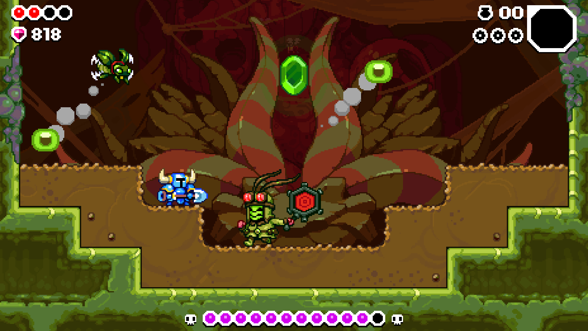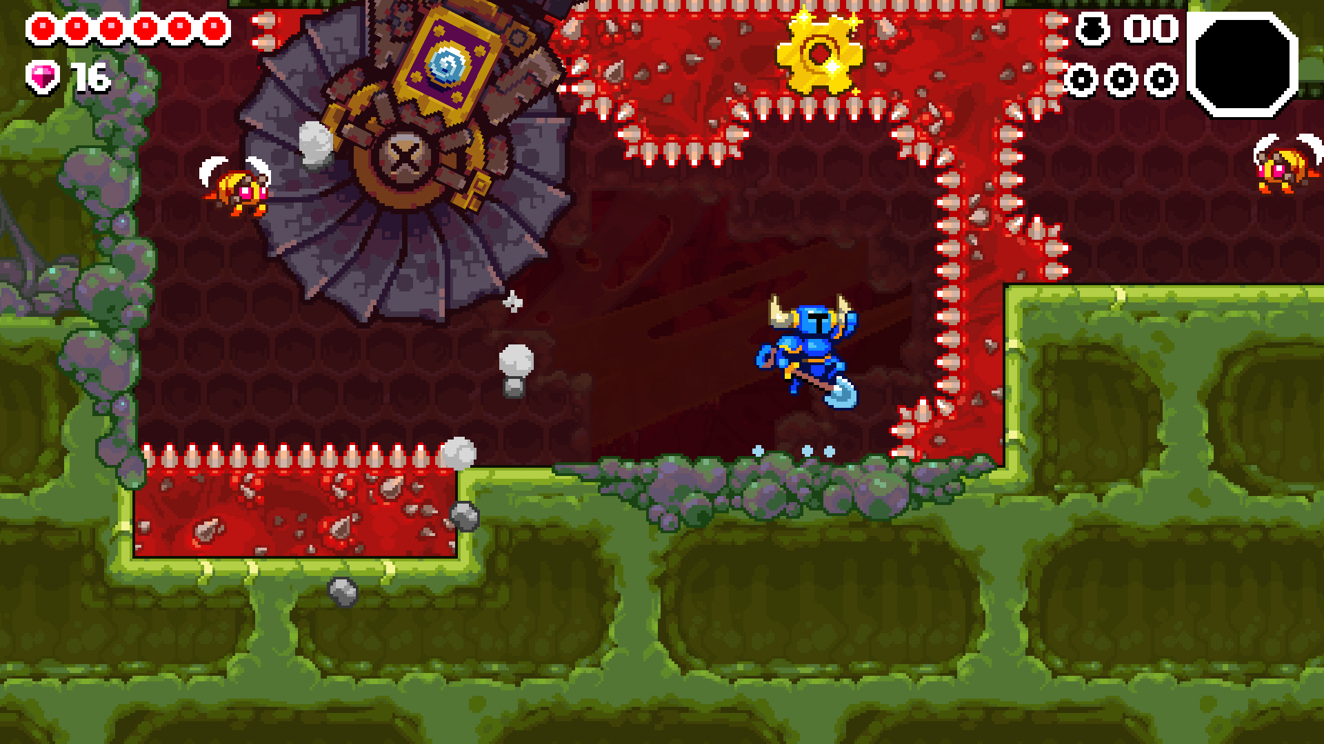Добро пожаловать в кишащие жуками глубины Grub Pit! Даже если вы просто проходите мимо, эти жуткие ползучие существа не слишком хорошо относятся к незванным гостям. Поторопитесь, раскапывая плотоядную грязь — она ответит, выпустив свои смертоносные шипы! Другие враги, такие как Rolling Beeto, будут катиться к вам с гигантскими шарами из… чего-то. Фу! Когда вы доберетесь до дна гнезда, вы встретите еще одного члена Гекскаваторов… возможно, некоего любителя жуков-спелеолога?