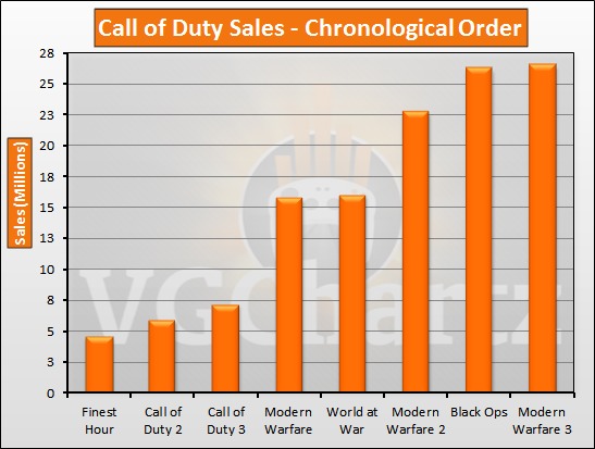 Однако даже эти цифры бледнеют на фоне игр серии call of duty , отгрузки которых составили 125 миллионов копий до выхода black ops 2 и ghost