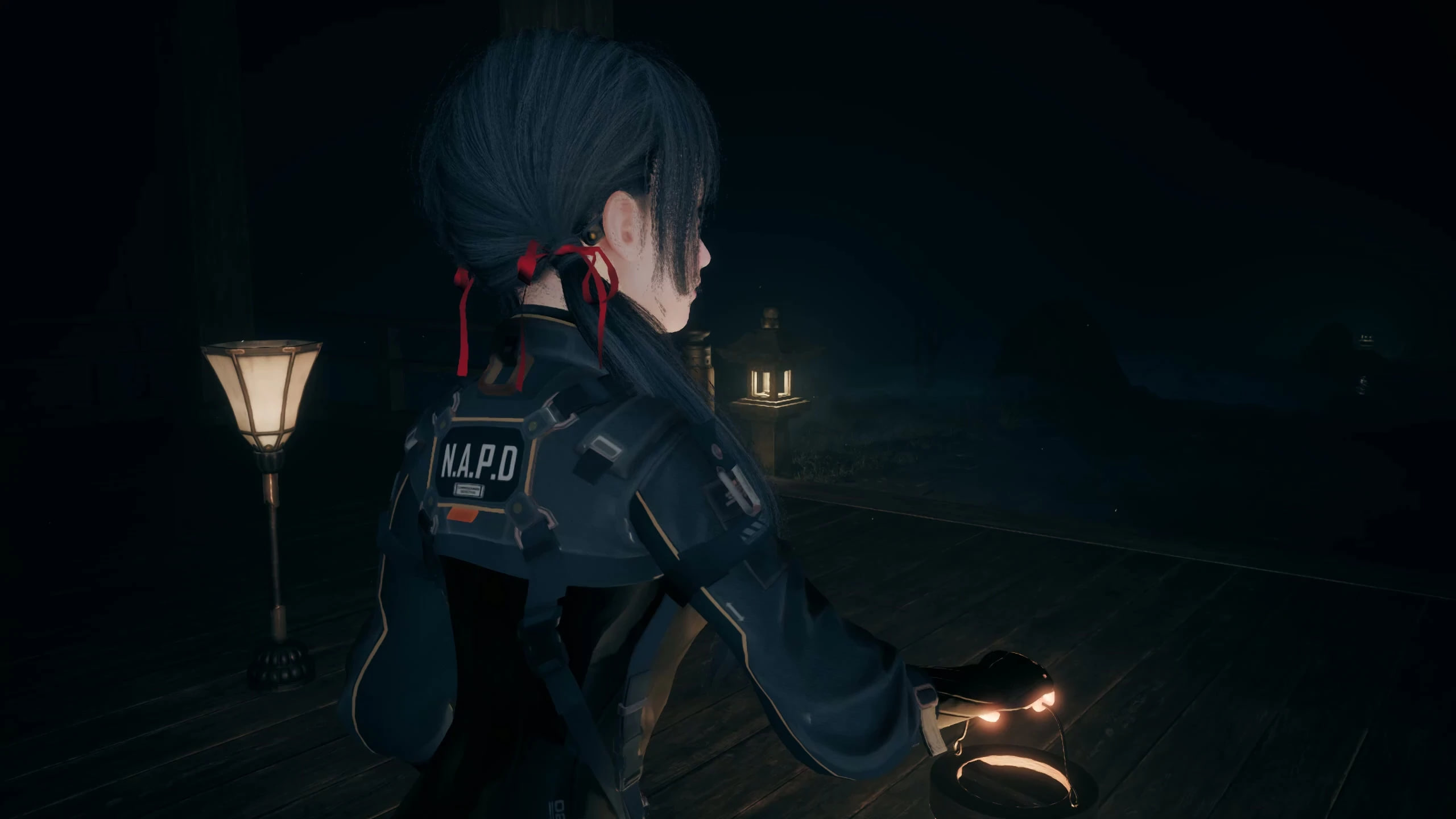 Галатея одета в детализированный тактический костюм, напоминающий футуристическую полицейскую униформу. Костюм выполнен в темных тонах (черный и серый) с золотыми акцентами и нашивкой "N.A.P.D." на спине. Он включает в себя облегающее боди (без бюстгальтера), шорты, пояс с подсумками, набедренную сумку и высокие чулки. Модель, по-видимому, обладает динамической физикой для груди, ягодиц и волос.