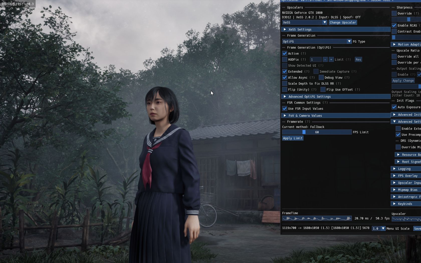p.s. В этой игре попробвал напильник OptiScaler. Конечно запустить FSR4 не получилось. Впрочем судя по инету на RX 6000 серии красных карт это тоже тот еще квест. С обязательным понижением версии графического драйвера из лучших времен. И все равно кучей артефактов и глюков. А RX 5000 серия в пролете априори как впрочем и моя GTX 1000 серия паскалей как ее аналог. Впрочем я не в обиде при помощи OptiScaler получилось заставить работать игру через XeSS 2.0.2, а в качестве силовой поддержки OptiFG с использованием FSR 3.1 FG. Мое почтение автору OptiScaler. Кстати можно использовать и "DLSS Enabler" с ним попроще в плане пользования на этапе установки. Впрочем иногда чего-то ломается в нем. Так что иногда приходится оригинальным OptiScaler пользоватся. Вот что в итоге у меня получилось с той же SILENT HILL f