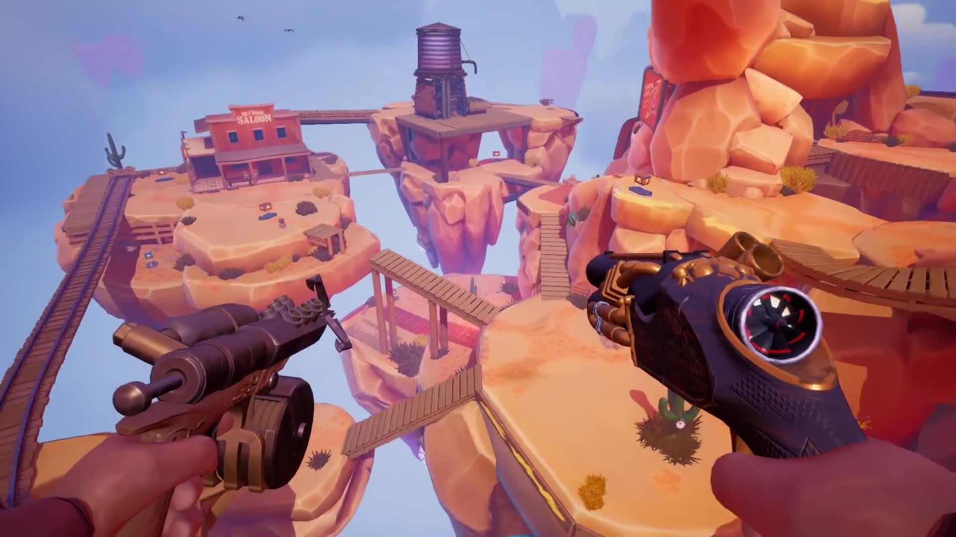 Sky Noon предлагает геймплей в лучших традициях «космических карт» из Quake 3 Arena. Если помните, на них удачным выстрелом можно было вытолкнуть противника в космос. Правда, при этом можно было случайно сделать из него фарш. В Sky Noon так не получится: шерифы и бандиты вооружены пневматическим оружием. Обычный револьвер лишь немного подталкивает врага в воздухе, но на карте можно найти более сильные пушки, отбрасывающие так, что вернуться на небесную твердь почти невозможно…