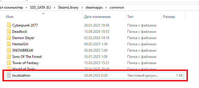 4. Находим в папке "common" текстовый файлик "localization" - Открываем его любым текстовым редактором (у меня блокнот)